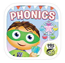 Builds skills with a series of carnival games, like a spelling wheel that matches letters and sounds. For iOS. Super Why Phonics Fair, $3. Ages 3 to 6.